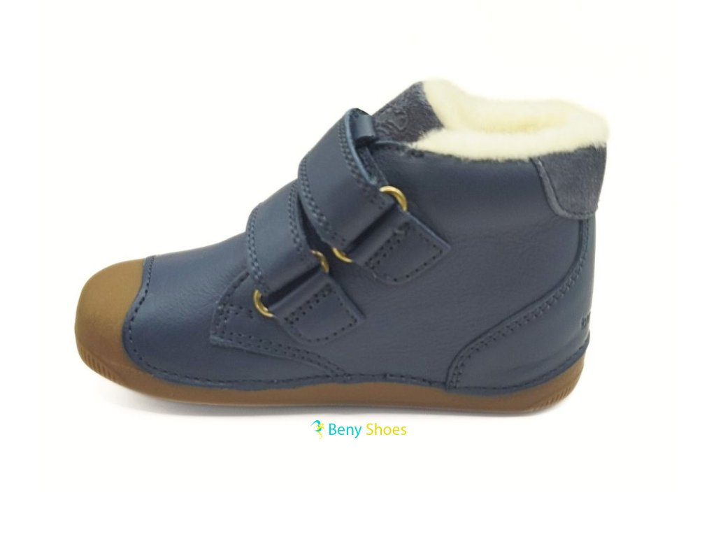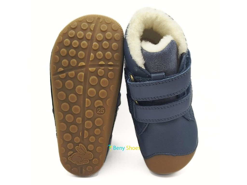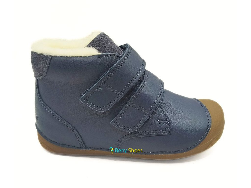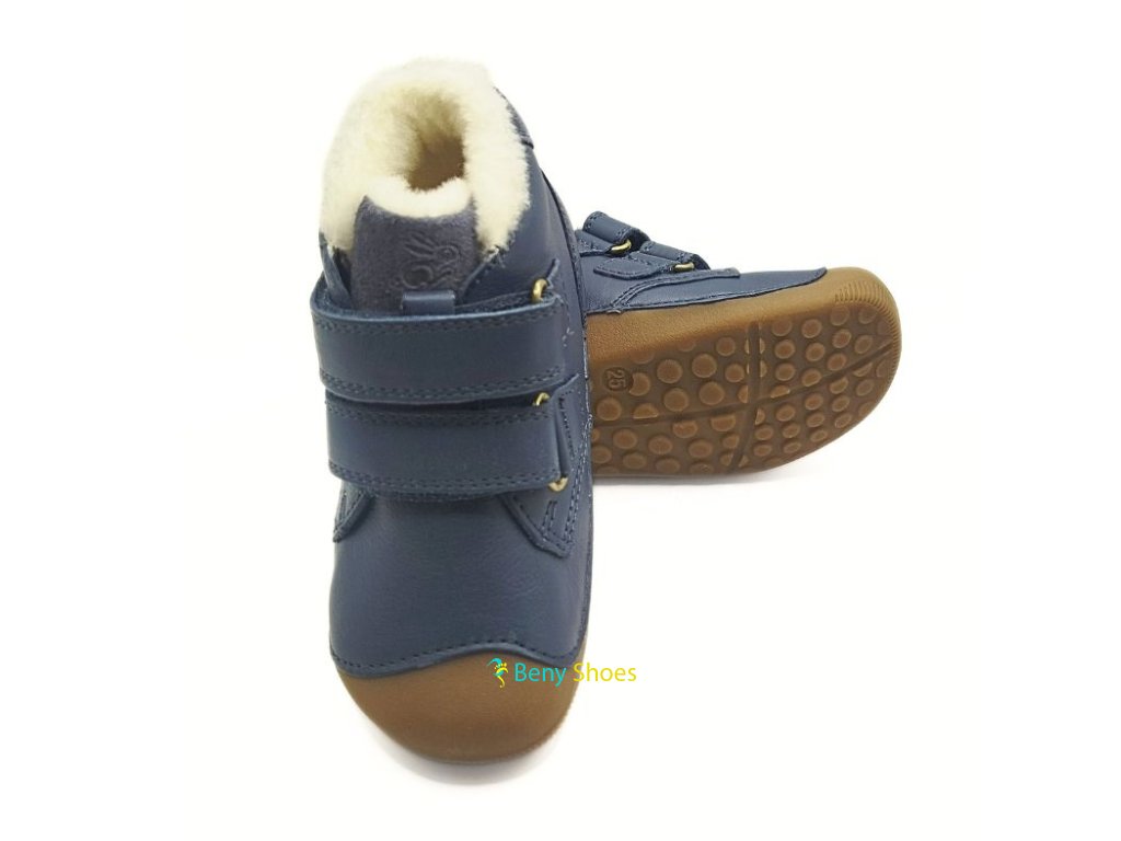 Dětské zimní kotníkové barefoot boty vyrobené z vysoce kvalitní kůže. Jsou zateplené ovčí vlnou, která udrží nožky pěkně v teple. Model Petit se zapínáním na suchý zip se bude velmi snadno obouvat a díky okopu na špičce poskytuje ochranu pro malé prstíky.