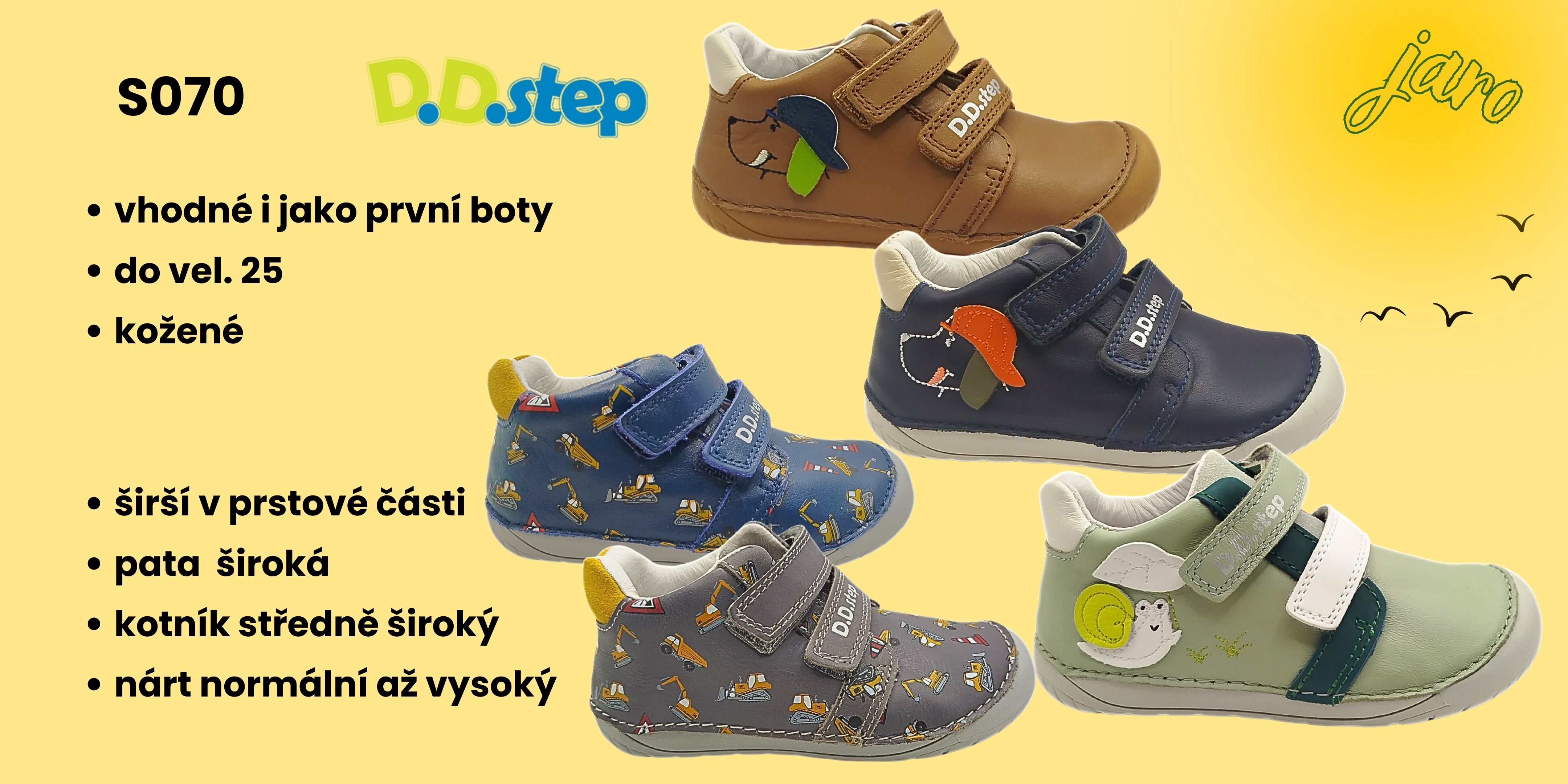 Obuv D.D.step se vyznačuje vysokým pohodlím a komfortem a atraktivním vzhledem. Boty D.D.step jsou vyráběny z měkkých kůží, jsou používány neklouzavé ohebné podešve a kožené stélky. Použité materiály zaručují flexibilitu a pohodlí pro dětskou nožičku. Konstrukce obuvi je navržena tak, aby co nejméně bránila zdravému vývoji dětské nohy.