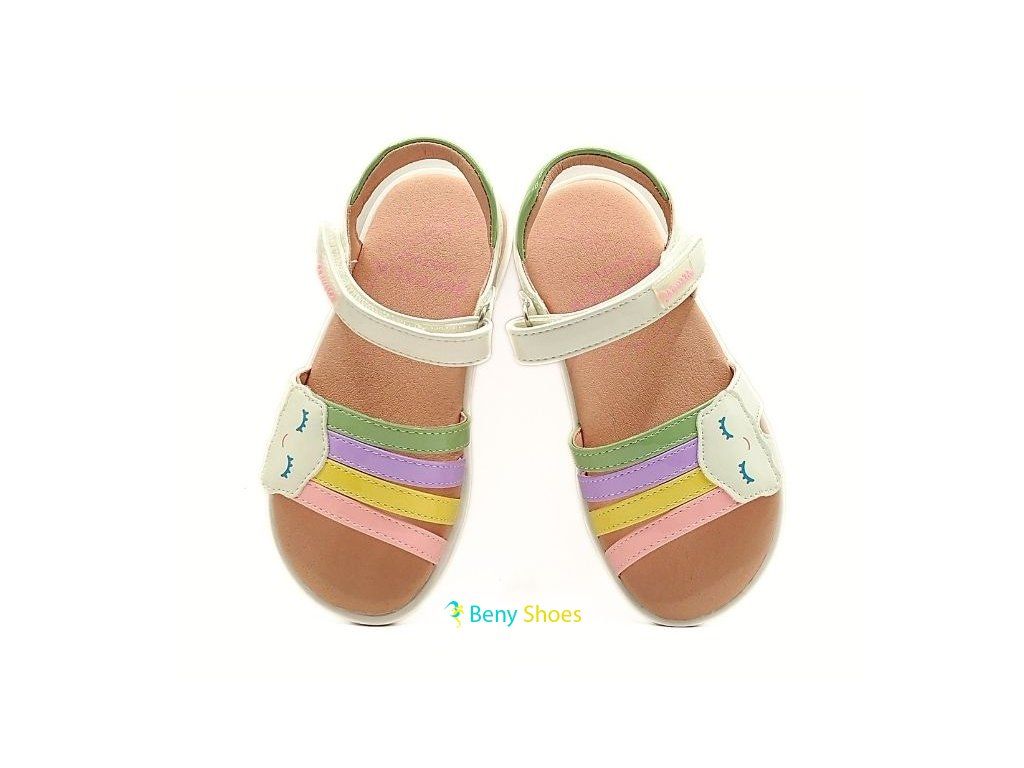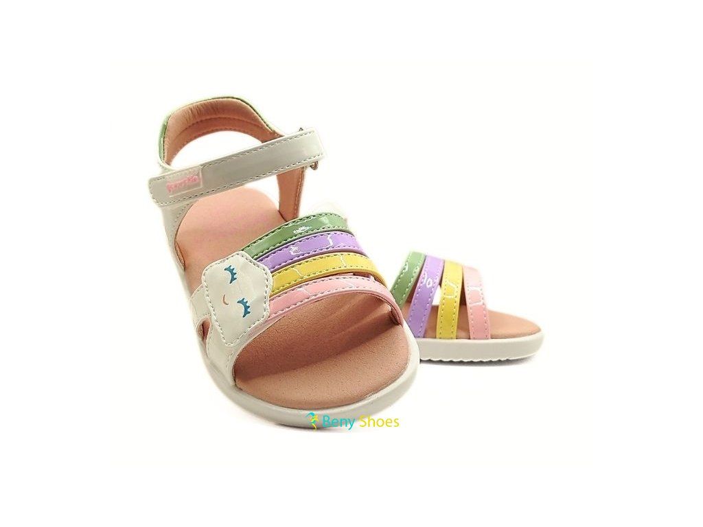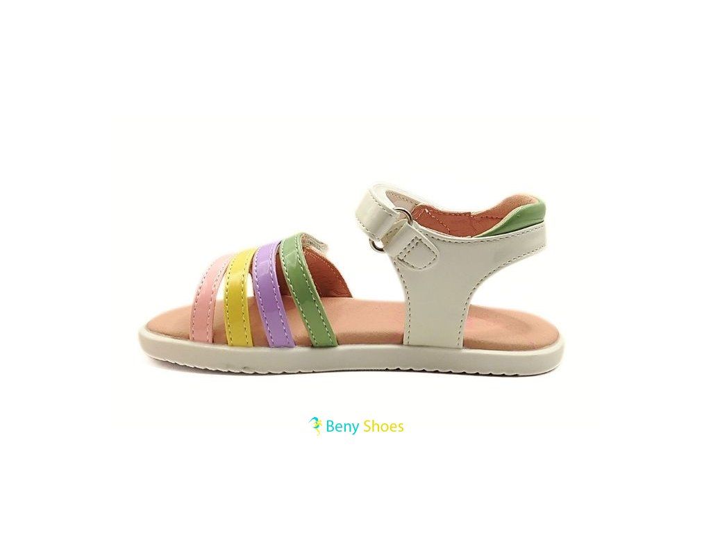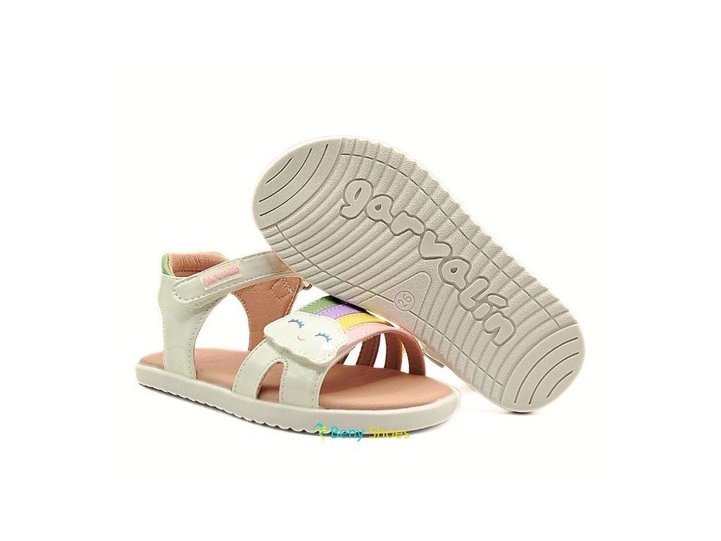 Garvalín Charol blanco y multicolor sandálky s duhou