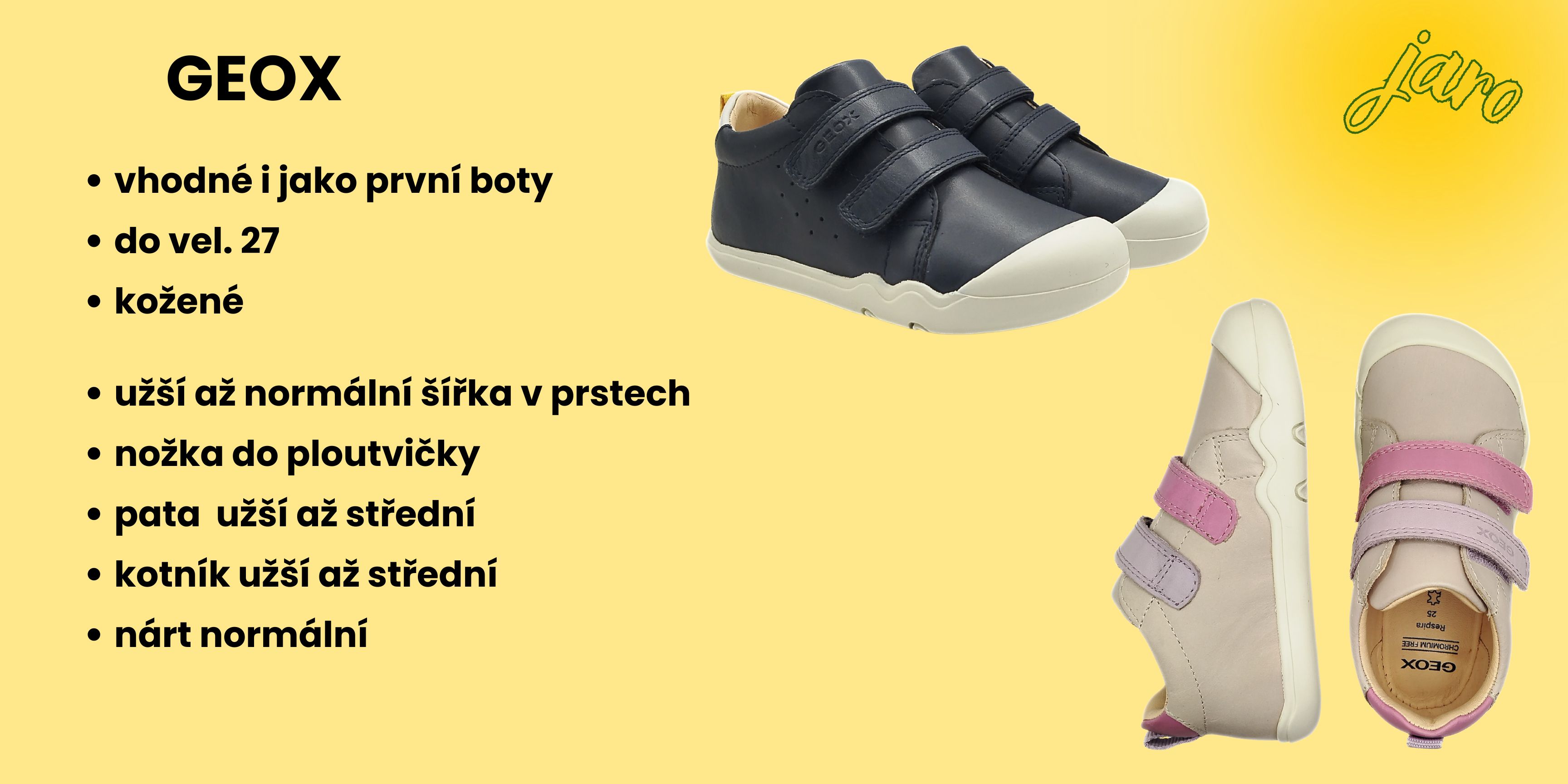 Italská značka GEOX patří mezi přední výrobce kvalitní italské obuvi. Součástí jejich nabídky jsou i barefoot dětské boty, které vznikly ve spolupráci s italskou asociací podiatrů a nabízí tak jedinečnou podporu přirozeného vývoje nohou a dostatek prostoru pro volný pohyb prstů. Obuv GEOX tedy nabízí nejen komfort a pohodlnou chůzi, zaujmou také svým nadčasovým vzhledem a promyšleným designem.