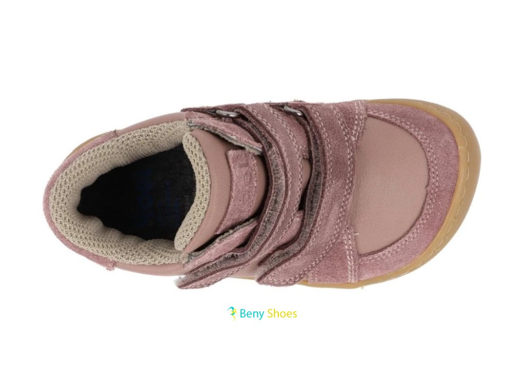 Kotníkové barefoot boty s membránou pro nejmenší nožky střední až širší šířky.